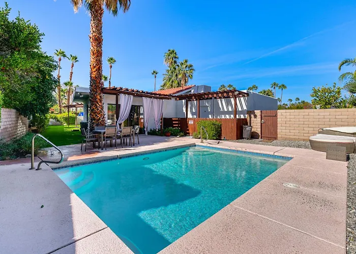 Gelegen ca. 7 km von natürlichen Wahrzeichen wie dem Erlebnisbad Wet'n'Wild Palm Springs, bietet die 2-Zimmer- 2 Mi To Downtown Palm Springs Scenic Home With Yard einen Swimmingpool.